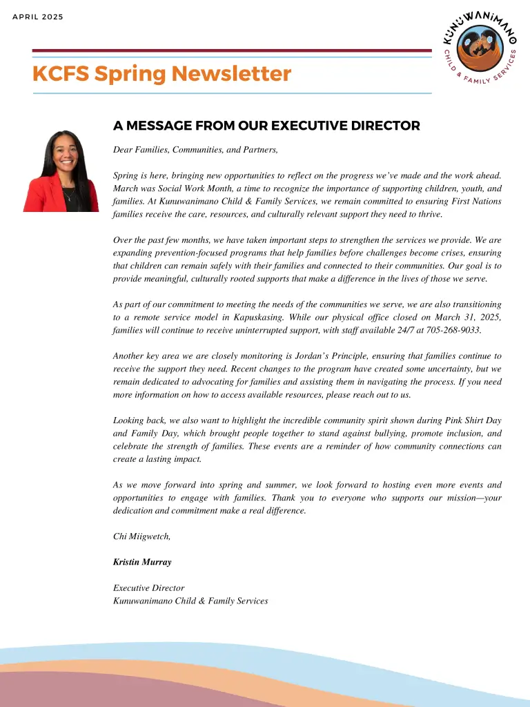Stay up-to-date with the latest happenings at Kunuwanimano Child & Family Services. Discover important announcements, organizational news, and information on upcoming workshops, community gatherings, and special events.